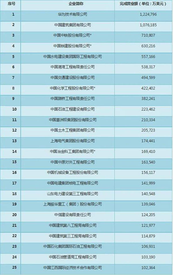 2月24日,商務(wù)部發(fā)布《2020年我國對外承包工程業(yè)務(wù)完成營業(yè)額前100家企業(yè)》榜單。