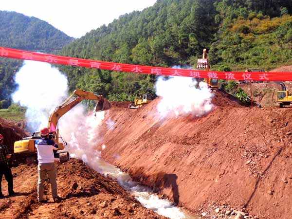 青龍水庫是一座供農(nóng)業(yè)灌溉、灌區(qū)農(nóng)村人畜飲用水、縣城供水為主的蓄水工程。水庫位于普洱市景東縣錦屏鎮(zhèn)、文龍鄉(xiāng)境內(nèi)的龍樹河上,水庫樞紐由攔河壩、輸水隧洞、溢洪道組成。我公司于今年6月中標(biāo)承建了大壩及溢洪道施工標(biāo),中標(biāo)價1.1億元。青龍水庫大壩圍堰的成功截流,標(biāo)志著該項目進入全面施工階段。