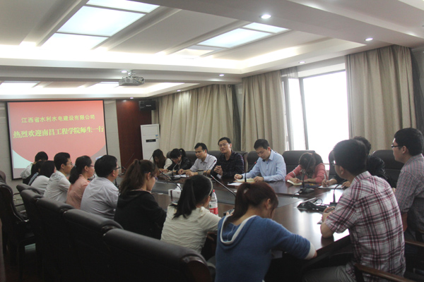5月8日上午,南昌工程學院招生就業(yè)處、水利與生態(tài)工程學院聯(lián)合組織學生至我公司進行參觀交流。公司黨委副書記王延軍、人力資源部經(jīng)理劉俊、副經(jīng)理熊保根熱情接待了南昌工程學院師生一行,引領大家參觀公司辦公區(qū),隨后,雙方進行了親切座談。王延軍副書記從當前的就業(yè)形勢、擇業(yè)的心態(tài)、擇業(yè)的技巧等方面與學生進行探討、交流,詳細回答了學生們提出的每一個問題,并從企業(yè)用人的角度給學生們提出了期望和建議。