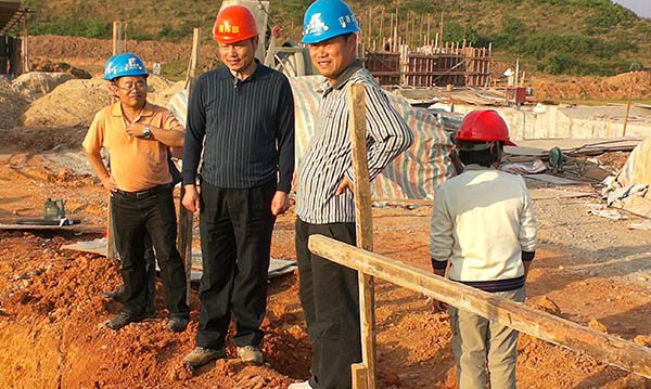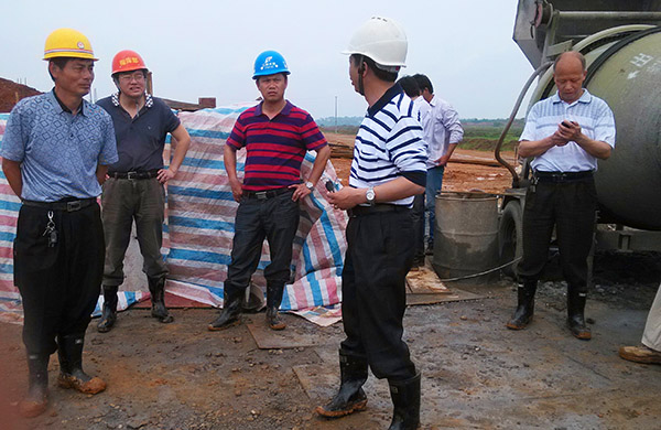 吳義泉總指揮現(xiàn)場(chǎng)查看舍邊電排站副廠(chǎng)房施工