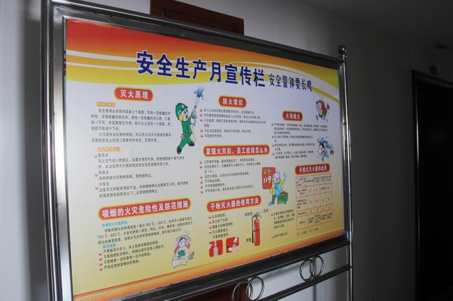 公司總部在辦公樓懸掛“關(guān)注安全,平安是福”、“強化安全基礎(chǔ),推動安全發(fā)展”橫幅,并在辦公樓內(nèi)每層擺放2個安全宣傳牌。