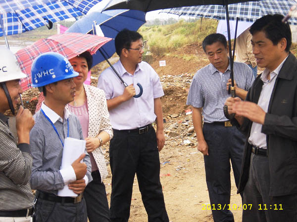 孫廳長一下車直奔工地施工現(xiàn)場,并主動與現(xiàn)場施工人員握手。當(dāng)走到防洪墻施工現(xiàn)場時,孫廳長停住腳步,聽取完施工情況匯報后,他對駐守在施工現(xiàn)場的參建各單位及個人表示問候,祝大家國慶節(jié)日快樂,他要求各單位再接再厲,按省五河辦的相關(guān)部署確保按期完工。最后,孫廳長要求各單位把好質(zhì)量和安全關(guān),確保工程完工不出任何事故。
