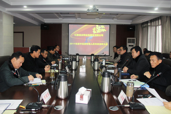 2015年1月31日,江西省水利水電建設(shè)有限公司2014年度年終述職大會在公司總部順利舉行。公司董事長、黨委書記王元旦,總經(jīng)理徐洪良,國內(nèi)、國外工作的中高層管理人員、項目經(jīng)理代表,員工代表共50多人參加了述職大會??偨?jīng)理徐洪良主持會議。