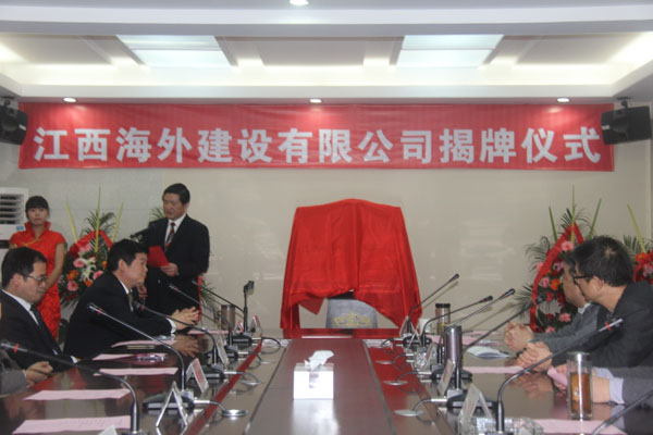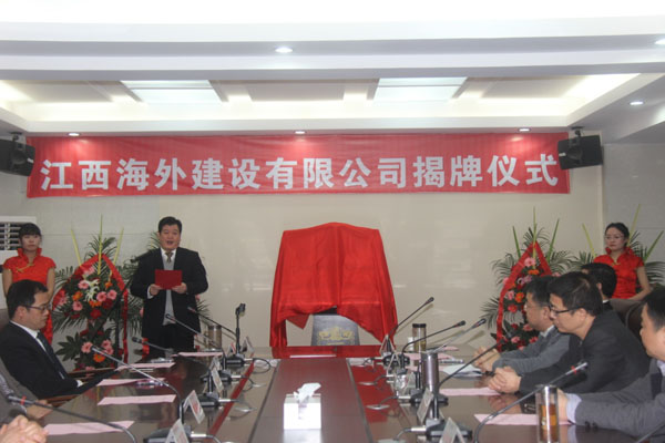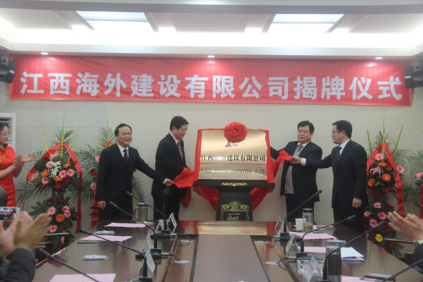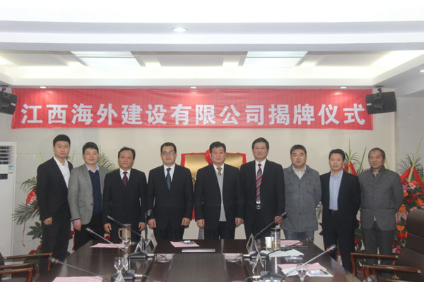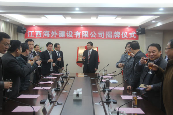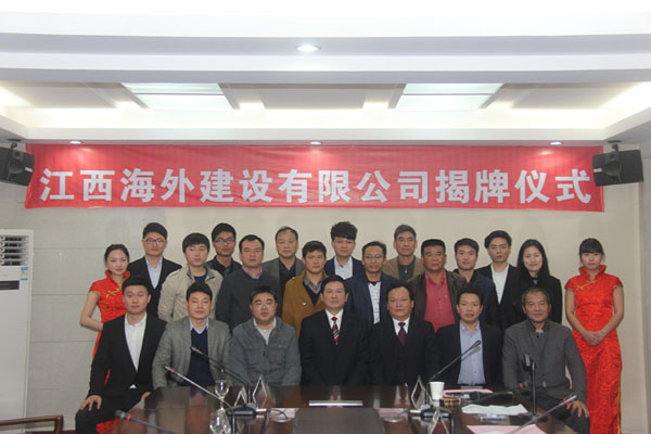 隨后,伴隨著歡樂喜慶的歌曲,總公司董事長(zhǎng)王元旦,總經(jīng)理徐洪良與江西海外建設(shè)有限公司執(zhí)行董事張周平,總經(jīng)理黃鄭民為新公司揭牌并合影留念。