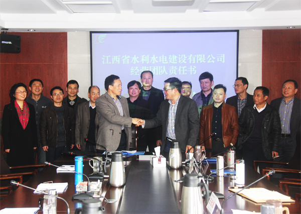 2015年4月11日,江西省水利水電建設(shè)有限公司2015年度國內(nèi)經(jīng)營團(tuán)隊(duì)業(yè)績責(zé)任書簽字儀式在公司總部星河國際22樓會議室舉行。公司總經(jīng)理徐洪良分別與公司經(jīng)營層高管、部門負(fù)責(zé)人簽訂了2015年度國內(nèi)經(jīng)營團(tuán)隊(duì)業(yè)績責(zé)任書。