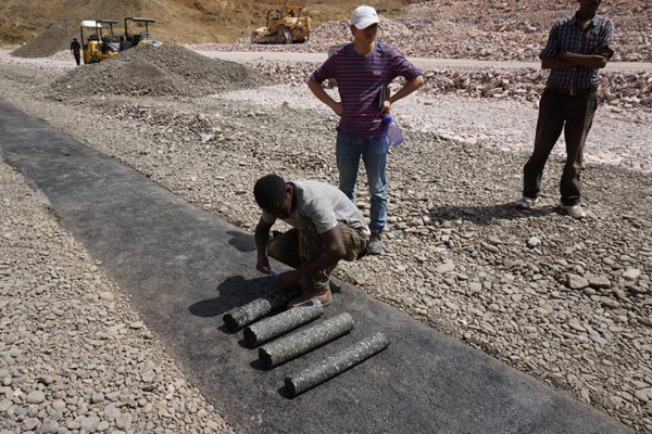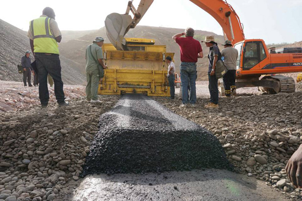 公司高度重視Wolkite瀝青混凝土芯墻的建設(shè),成立了以黃生寶為經(jīng)理的項目組領(lǐng)導(dǎo)班子,選派了一批技術(shù)過硬、經(jīng)驗豐富、善于學習的技術(shù)和操作人員,并從國內(nèi)專門聘請從事該方面工作的專家親赴現(xiàn)場進行技術(shù)指導(dǎo)和把關(guān)。在公司董事會的正確領(lǐng)導(dǎo)下,項目部全體成員緊緊圍繞著Wolkite瀝青混凝土芯墻項目全力施工。本著特事特辦的原則,國內(nèi)后勤組緊急采購發(fā)送了一大批施工設(shè)備,為項目開好頭打下了堅實的基礎(chǔ)。為了優(yōu)質(zhì)高效地完成任務(wù),項目組全體人員精誠團結(jié)、夙興夜寐,不計白天黑夜,不管分內(nèi)分外,取得的成果得到了業(yè)主和監(jiān)理的肯定。從制定施工方案和技術(shù)指標,到裝配實驗儀器和施工設(shè)備,從悶熱的室內(nèi)配合比工作,到烈日炎炎下的現(xiàn)場施工,無不凝結(jié)著大家的智慧與汗水。