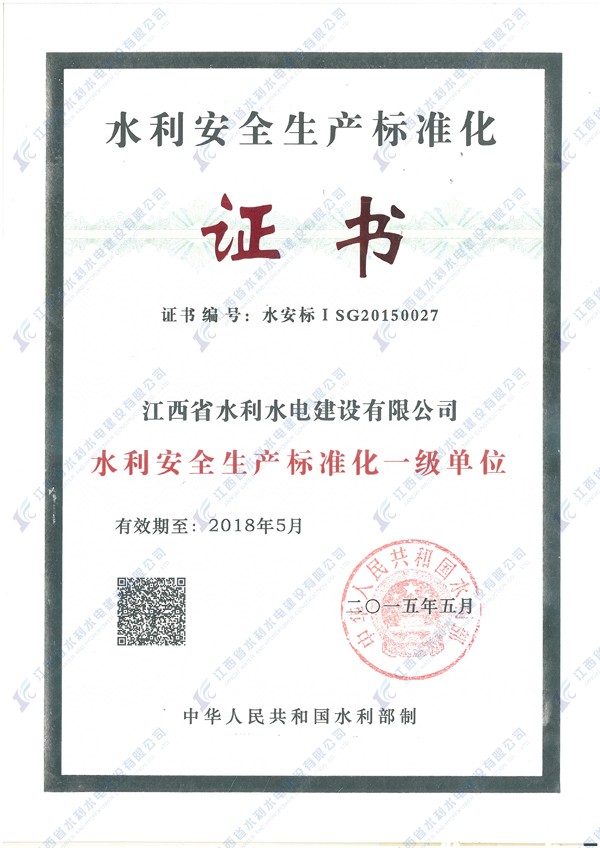 2015年6月,我公司順利通過(guò)水利部安全生產(chǎn)標(biāo)準(zhǔn)化一級(jí)單位的最終評(píng)審,獲得“安全生產(chǎn)標(biāo)準(zhǔn)化一級(jí)單位”證書(shū),標(biāo)志著公司安全生產(chǎn)首先邁入了“標(biāo)準(zhǔn)”時(shí)代。
