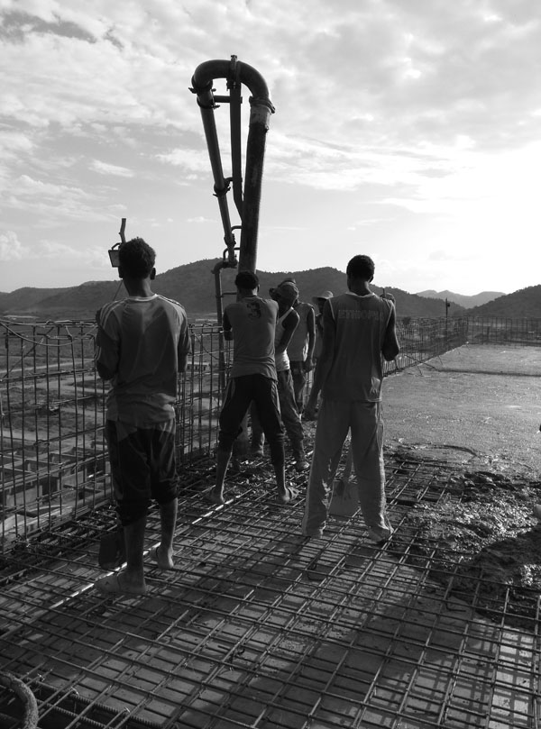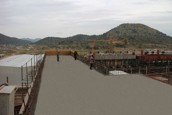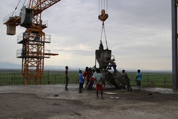該項目位于接近赤道的埃塞俄比亞南部,素以氣候炎熱而著稱,施工條件頗為艱苦。施工過程中,項目部成員每天早出晚歸,常常一站就是一天,二十四小時連班也是家常便飯。在主廠房接近封頂?shù)年P(guān)鍵時刻,項目部全體員工有的夜里跟隨混凝土罐車執(zhí)行押車任務(wù),有的深夜依然堅持在澆搗一線指揮作業(yè),連續(xù)奮戰(zhàn)數(shù)日,終于完成封頂大任。