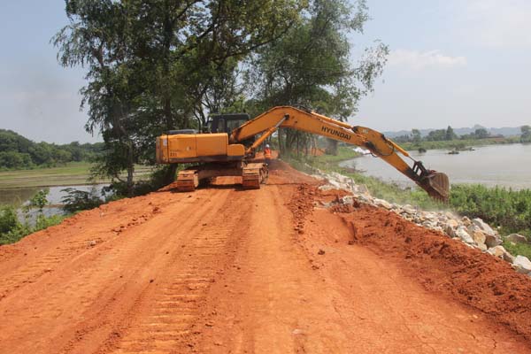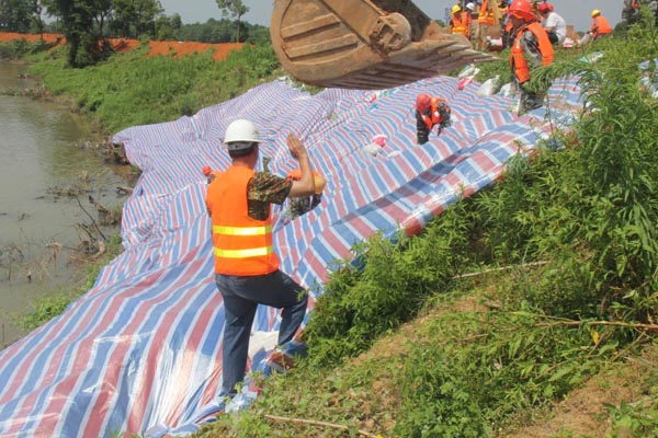 本次演練是以貴溪市新田聯(lián)圩防洪工程施工項目所在地連日持續(xù)大雨天氣,引發(fā)羅塘河河水暴漲,導(dǎo)致樁號K10+247~K11+000段大堤出現(xiàn)塌方、開裂現(xiàn)象,啟動防汛應(yīng)急預(yù)案為背景,開展的防汛演練。演練科目包括:險情報告、啟動應(yīng)急預(yù)案,組織應(yīng)急救援隊伍投入搶險,堤腳拋石固腳、堤身砂卵石及土方填筑、堤身迎水面鋪設(shè)防沖彩條布、編織袋裝砂石堤身加固等內(nèi)容。演習(xí)完成后,參與演習(xí)的主要成員,對本次演習(xí)效果進行了評價,為公司《防汛應(yīng)急預(yù)案》的修訂完善作了充分的基礎(chǔ)工作。