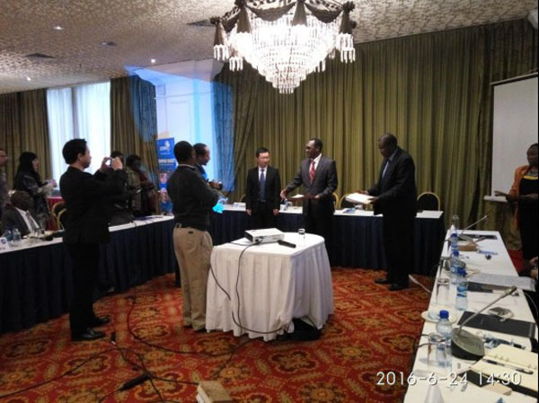 最后董國(guó)鋒處長(zhǎng)及肯尼亞商務(wù)部首席秘書(shū)Dr Chris Kiptoo共同為各國(guó)代表團(tuán)成員頒發(fā)此次培訓(xùn)的結(jié)業(yè)證書(shū)。本次活動(dòng)圓滿(mǎn)落幕。當(dāng)晚,公司董事、副總經(jīng)理、海外公司總經(jīng)理黃鄭民及肯尼亞公司副總經(jīng)理彭紅軍、經(jīng)營(yíng)部副經(jīng)理丁晨陽(yáng)一同出席了國(guó)際小水電中心的晚宴。