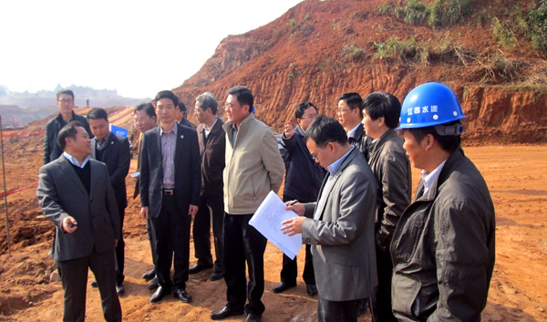 2013年11月20日,江西省萍鄉(xiāng)市市委書記陳衛(wèi)民率市委、市經(jīng)濟(jì)開發(fā)區(qū)、建設(shè)局等有關(guān)部門負(fù)責(zé)人來到我公司承建的萍鄉(xiāng)市城市防洪應(yīng)急工程2標(biāo)分洪河項(xiàng)目檢查指導(dǎo)工作。