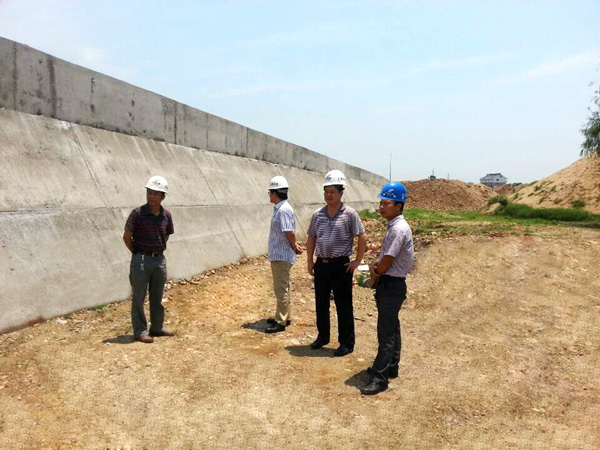 隨后,王總一行又馬不停蹄地趕往江西省五河治理防洪工程鉛山縣城西堤畜牧場至劉家洲段項(xiàng)目施工現(xiàn)場進(jìn)行檢查指導(dǎo)工作。董事長兼總經(jīng)理王元旦實(shí)地察看了施工現(xiàn)場,仔細(xì)了解了工程情況,對項(xiàng)目施工質(zhì)量作出了肯定的評價。他要求項(xiàng)目部要強(qiáng)化安全意識,加快進(jìn)度,確保工程質(zhì)量,按計劃完成并驗(yàn)收。王總還親切慰問了一線施工人員,提醒項(xiàng)目經(jīng)理部要做好職工的降溫防暑工作。