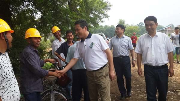 2014年8月8日上午,上饒市委書記陳俊卿一行來到我公司承建的玉山縣樟村鎮(zhèn)防洪工程檢查指導工作。來到施工現(xiàn)場,陳俊卿書記一行頂著炎炎烈日,深入查看并了解了防洪工程的投資規(guī)模和施工生產(chǎn)建設情況,隨后,項目部經(jīng)理楊小貴對項目完工后將產(chǎn)生的防洪生態(tài)效益作了簡單介紹,陳俊卿書記聽后非常高興,他指出,項目部和承建單位要齊心協(xié)力,加強安全生產(chǎn)管理,確保工程順利完工,早日造福當?shù)匕傩?。最后,陳俊卿書記還詢問了施工人員的生活情況,叮囑項目部既要保證工程施工進度,也要注意防暑工作,讓員工家屬放心。
