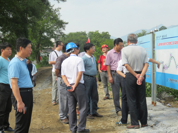為進(jìn)一步落實(shí)8月8日全省水利建設(shè)推進(jìn)會(huì)精神,2014年9月21日上午,以水利廳副廳長(zhǎng)廖瑞釗為組長(zhǎng)的督查組來到我公司承建的上饒市玉山縣樟村鎮(zhèn)防洪工程現(xiàn)場(chǎng)檢查指導(dǎo)工作。督查組一行深入工地全線施工現(xiàn)場(chǎng),每到一處都詳細(xì)詢問各參建單位情況,了解工程的投資規(guī)模、設(shè)計(jì)方案及進(jìn)度、質(zhì)量控制情況。督察組對(duì)樟村鎮(zhèn)防洪工程施工質(zhì)量尤其是工程外觀表示非常滿意。在看了工地整齊規(guī)范的五圖一牌及公司形象宣傳欄后,廖瑞釗副廳長(zhǎng)對(duì)我公司的標(biāo)準(zhǔn)化施工管理給予了高度評(píng)價(jià),還不時(shí)拍照記錄,并要求玉山縣水利局在全縣其他水利建設(shè)工地參照學(xué)習(xí)并加以推廣。在檢查完工地現(xiàn)場(chǎng)后,督察組在樟村鎮(zhèn)政府就防洪工程設(shè)計(jì)、施工、及鄉(xiāng)鎮(zhèn)規(guī)劃召開了座談會(huì)。