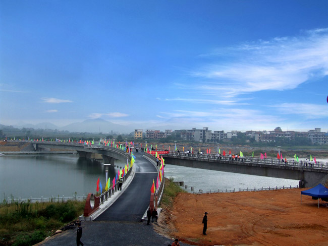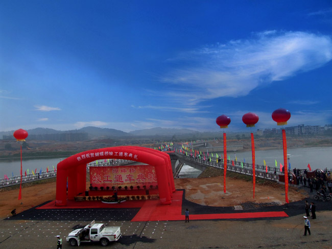 九月金秋,流光溢彩。2010年9月30日,在祖國華誕即將到來之際,我公司承建的宜春市秀江三級抬水壩及景觀橋(又稱為蝴蝶橋)工程舉行了竣工通車典禮。