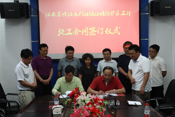 日前,我公司收到江西省峽江水利樞紐工程建設(shè)總指揮部中標(biāo)通知,成功中標(biāo)峽江水利樞紐工程柘塘防護(hù)工程。5月11日上午,公司董事長(zhǎng)總經(jīng)理王元旦代表公司與業(yè)主簽訂施工合同協(xié)議書,合同額為8741.44萬元。