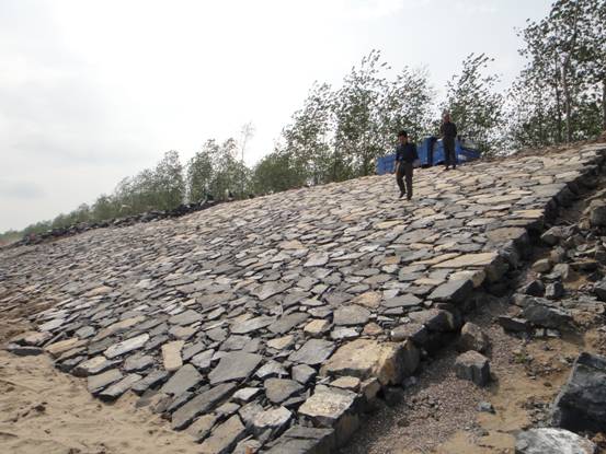[注:九江長(zhǎng)江江心洲固岸應(yīng)急度汛工程,包括九江縣江新洲1標(biāo)和彭澤縣棉船洲1標(biāo),由我公司中標(biāo)承建。工程主要建設(shè)內(nèi)容為拋石、砼四邊六面框架、干砌石護(hù)坡,項(xiàng)目總投資4000萬(wàn)元。江新洲和棉船洲大堤共保護(hù)面積130.39 平方公里,保護(hù)耕地12.18萬(wàn)畝,保護(hù)人口8.39萬(wàn)人,圩區(qū)內(nèi)土地肥沃,灌溉便利,是江西省的重要棉油生產(chǎn)基地。]