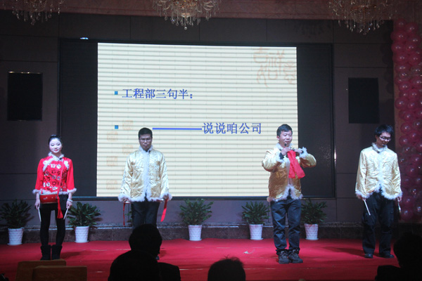 聯(lián)歡會現(xiàn)場喜氣洋洋,洋溢著新春的喜慶。董事長兼總經(jīng)理王元旦宣讀了2013年度優(yōu)秀表彰決定,并與公司領(lǐng)導(dǎo)班子一起,為海外公司等10個(gè)優(yōu)秀團(tuán)隊(duì)、黃鄭民等18位優(yōu)秀管理者和劉愚等21位優(yōu)秀員工進(jìn)行頒獎(jiǎng)。王總表示,希望受到表彰的先進(jìn)集體和先進(jìn)個(gè)人倍加珍惜榮譽(yù),戒驕戒躁、再接再厲,以更加開闊的眼界、更加務(wù)實(shí)的精神和更加昂揚(yáng)的斗志再創(chuàng)佳績;希望全司員工向先進(jìn)學(xué)習(xí),以先進(jìn)為榜樣,認(rèn)真學(xué)習(xí)貫徹黨的十八屆三中全會精神,勤奮工作、開拓創(chuàng)新,推動公司更好更快地發(fā)展,為全面實(shí)現(xiàn)“公司強(qiáng),員工富”的目標(biāo)而努力奮斗!