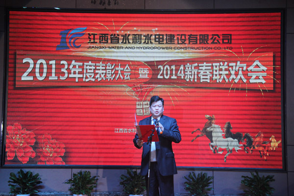 在隨后的新春聯(lián)歡會上,王總發(fā)表了熱情洋溢的新年賀詞,并代表公司董事會和領(lǐng)導(dǎo)班子,向全體員工、支持公司改革發(fā)展的離退休老同志和員工家屬,以及仍堅(jiān)守在工作崗位的海內(nèi)外一線員工致以節(jié)日的祝福和誠摯的問候。王總在致詞中說,2013年是公司發(fā)展史上不平凡的一年,在公司董事會的正確領(lǐng)導(dǎo)下,全體員工以企業(yè)為家,團(tuán)結(jié)一心、不畏艱難,腳踏實(shí)地、開拓創(chuàng)新,沿著年初制定的各項(xiàng)工作目標(biāo)努力奮進(jìn)。公司各項(xiàng)事業(yè)繼續(xù)保持蓬勃發(fā)展的良好形勢,朝著質(zhì)量好、品牌優(yōu)、市場廣的集團(tuán)型企業(yè)方向邁進(jìn)。2013年,公司開拓進(jìn)取、勇于突破,準(zhǔn)確定位、大膽決策,利用資本運(yùn)作境內(nèi)外項(xiàng)目,以投融資帶動市場,在國內(nèi)嘗試承接BT項(xiàng)目,國外則跨行業(yè)進(jìn)入投資領(lǐng)域,利用投資經(jīng)營提升企業(yè)競爭力。王總指出,公司在2013年取得了一系列優(yōu)秀的成績,兩項(xiàng)省級工法和兩項(xiàng)部級工法通過評審,內(nèi)部管理制度日益健全,爆破資質(zhì)、城市園林綠化資質(zhì)通過審核,在國際工程建設(shè)領(lǐng)域發(fā)展迅速,被譽(yù)為江西水利行業(yè)走向世界、開拓國際市場的排頭兵。