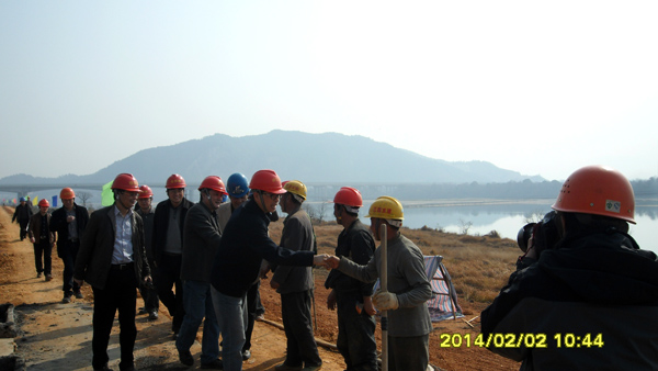 2月2日,正值農(nóng)歷大年初三,江西省水利廳黨委書記、廳長(zhǎng)孫曉山來到公司承建的峽江水利樞紐樟山防護(hù)工程施工現(xiàn)場(chǎng),親切看望并慰問春節(jié)期間仍堅(jiān)守崗位的一線施工人員。