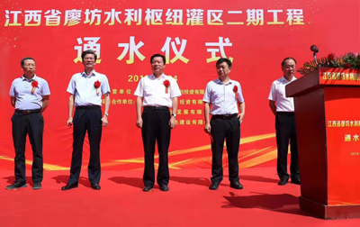 9月24日上午,廖坊水利樞紐灌區(qū)二期工程通水儀式在該工程西干渠渠首舉行。撫州市委副書記、市長(zhǎng)張鴻星宣布開閘通水;市委副書記王宏安致辭;省水利廳副廳長(zhǎng)王純、省發(fā)改委副巡視員王威出席;副市長(zhǎng)徐國(guó)義主持。公司黨委書記、董事長(zhǎng)王元旦,公司常務(wù)副總經(jīng)理王俊華,總經(jīng)理助理彭燦華出席儀式。