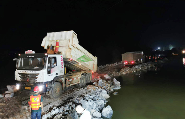 7月13日下午,公司完成封堵工作技術(shù)測(cè)量和封堵工作技術(shù)方案制定,7月13日晚上,搶險(xiǎn)技術(shù)、施工人員及設(shè)備陸續(xù)進(jìn)場(chǎng),并調(diào)配塊石、砂礫石等各類材料進(jìn)場(chǎng)。決口封堵采取南北兩岸同時(shí)進(jìn)占方式施工, 7月14日中午14時(shí)開始進(jìn)占施工,經(jīng)過兩天兩夜連續(xù)55個(gè)小時(shí)施工作業(yè),于7月16日晚上21時(shí)43分,完成決口合攏,比預(yù)計(jì)完工時(shí)間提前50小時(shí)。