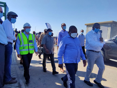 陪同總統(tǒng)參觀視察的還有總統(tǒng)府辦公廳主任、公共工程部部長、馬普托省省長、國家水務局局長等,業(yè)主代表、世行代表、監(jiān)理代表、承包商代表和當?shù)鼐用翊硪煌瑓⒓邮⒌?,莫桑比克國家電視臺和主流平面媒體進行了全程直播報道。