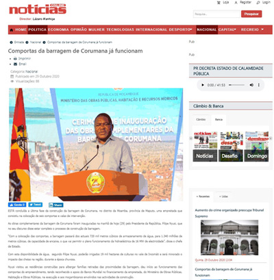 經(jīng)過一千多天夜以繼日的辛勤努力,集設計、制造、施工于一體的莫桑比克Corumana大壩項目終于迎來了竣工的喜悅時刻。10月29日,莫桑比克總統(tǒng)紐西閣下親臨現(xiàn)場,為項目揭牌剪彩。
