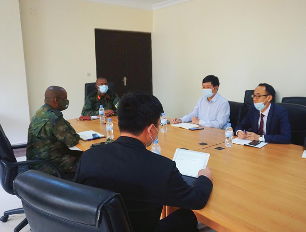 張周平一行會見了軍事學(xué)院項目業(yè)主--盧旺達軍事學(xué)院司令。雙方就疫情期間項目的施工情況進行了充分的交流,氣氛熱烈融洽。雙方非常珍惜和重視此次合作,表示會全力支持推動項目進展,并期待兩個團隊在日后工作中能夠繼續(xù)保持積極有效的溝通,務(wù)實地解決施工難點,盡早完成預(yù)期建筑施工目標(biāo)。