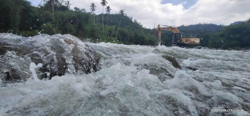 文字說明;該照片是在伯恩河中用手機拍攝,是印尼疫情復(fù)工后開辟新施工道路時的場景。在奔騰的洪流中激流拍石,浪花飛濺,挖機迎難而上,象征著公司堅韌不屈的品格、水建人大無畏的工作熱情。對岸的滿山綠樹在藍天白云下,勾勒出一幅壯麗的畫面,預(yù)示著伯恩電站的美好未來,高高的椰子樹,象征著集團公司輝煌的明天!