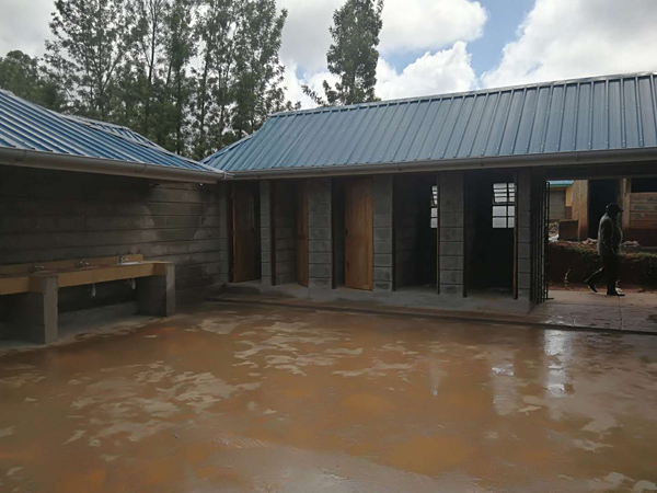 2020年初,肯尼亞公司總經(jīng)理賀翔及286公路項目經(jīng)理廖會文,在陪同肯尼亞議會常務秘書Matinga及交通部領導巡視286公路項目時發(fā)現(xiàn)當?shù)豊garu小學公共衛(wèi)生設施極其簡陋,嚴重危害全校師生在疫情期的身體健康??夏醽喒景l(fā)揚“江西水建”貫有的“捐贈公益,造福社會”的優(yōu)良傳統(tǒng),為小學捐建公共衛(wèi)生設施。施工期間恰逢雨季,疫情肆虐,人員物資極度匱乏,肯公司加大施工力度,克服重重困難,圓滿完成施工。
