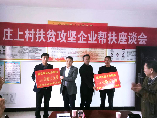 為認真貫徹落實黨的十九大關(guān)于堅決打贏脫貧攻堅戰(zhàn)的新部署新要求,踐行企業(yè)的社會責(zé)任。11月17日,公司副總經(jīng)理王俊華同志率撫州廖坊灌區(qū)二期工程施工總部負責(zé)人胡福民、項目財務(wù)部負責(zé)人肖志兵代表江西省水利水電建設(shè)有限公司前往南城縣洪門鎮(zhèn)參加莊上村扶貧攻堅企業(yè)幫扶座談會,并將公司捐助的10萬元扶貧資金送至莊上村村委會。
